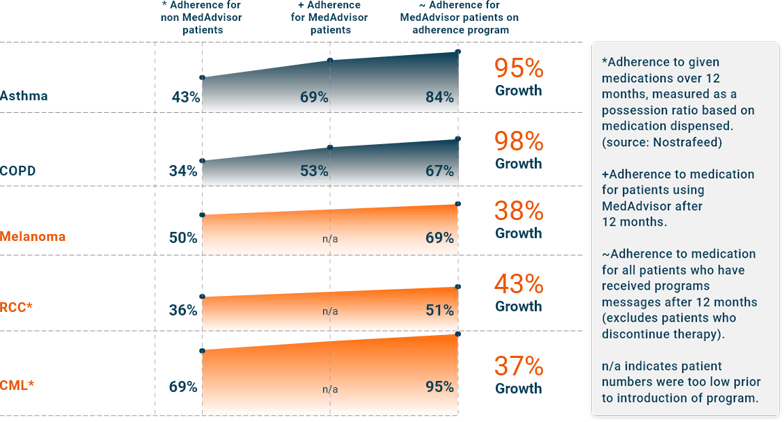 With over 1 million connected users and a network of over 3,100 pharmacies, MedAdvisor can help you reach patients with your health interventions nationwide.